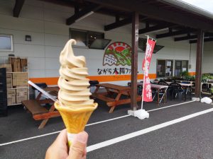 近隣で収穫された農産物はリーズナブルはお値段で販売しており、写真のソフトクリームはLINE登録をすると通常350円のアイスが200円で食べられるというお手頃なアイスクリームです。