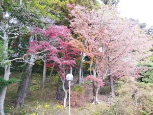 本堂の後ろにも社殿があり、その周辺はこちらの場所が丁度良い気温なのか、既に千葉でも時期外れとなる紅葉で彩られてました。